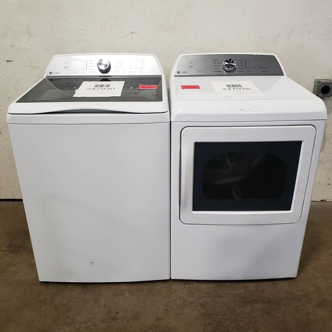 4.9 Cu. Ft. GE Top Load Washer and Dryer Set White - PTW605BSRWS