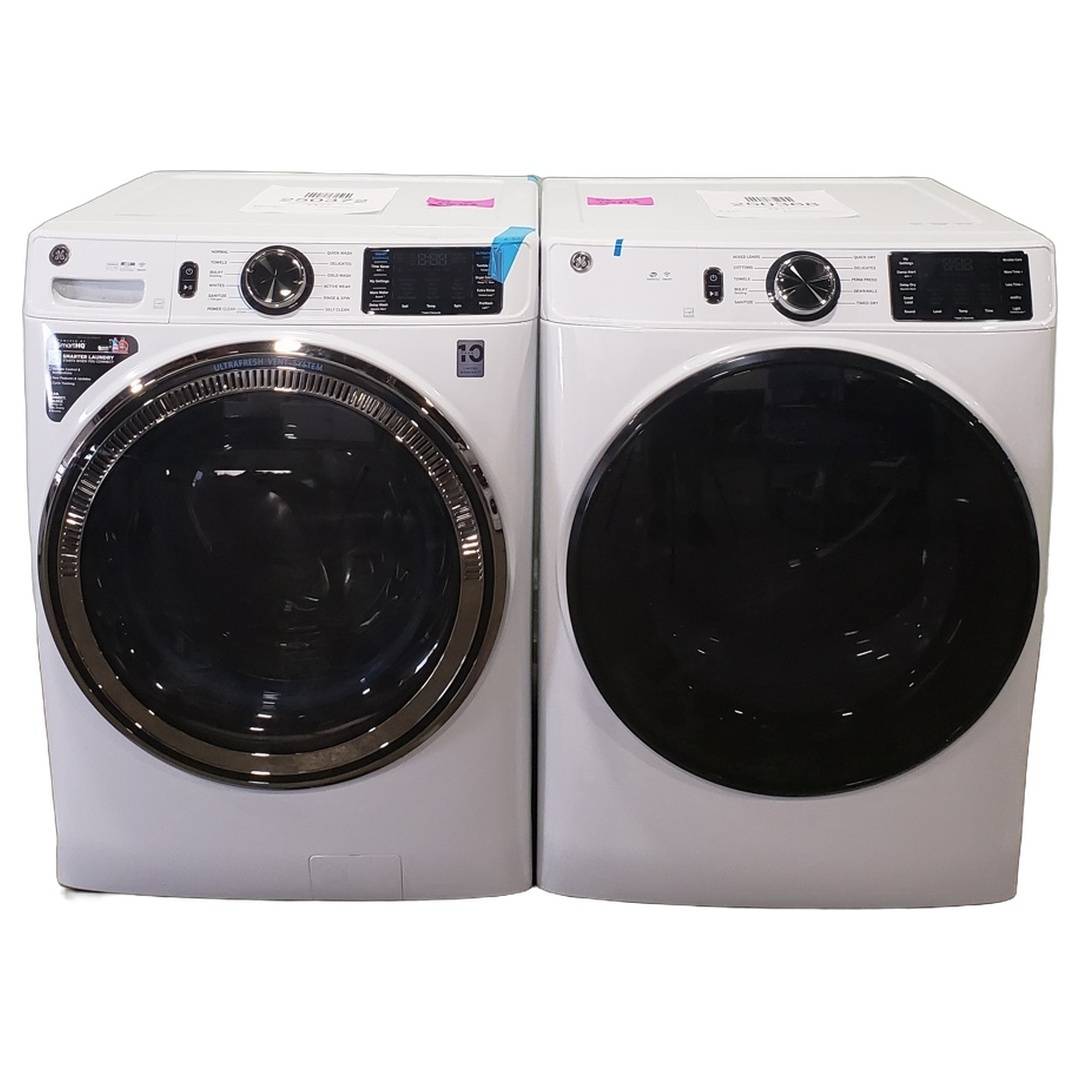 5.0 Cu. Ft. GE Front Load Washer and Dryer Set White - GFW655SSVWW