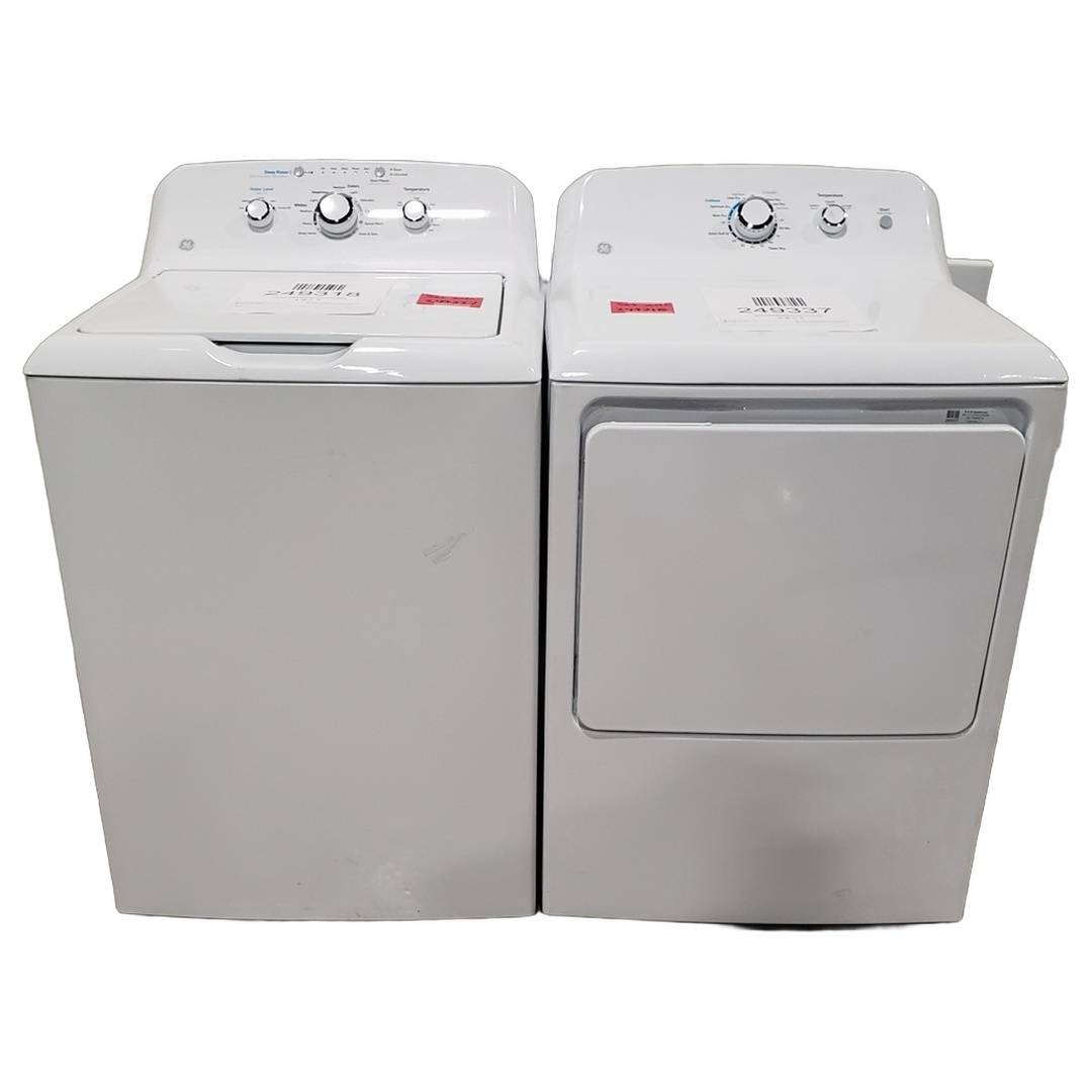 4.0 Cu. Ft. GE Top Load Washer and Dryer Set White - GTW325ASWWW