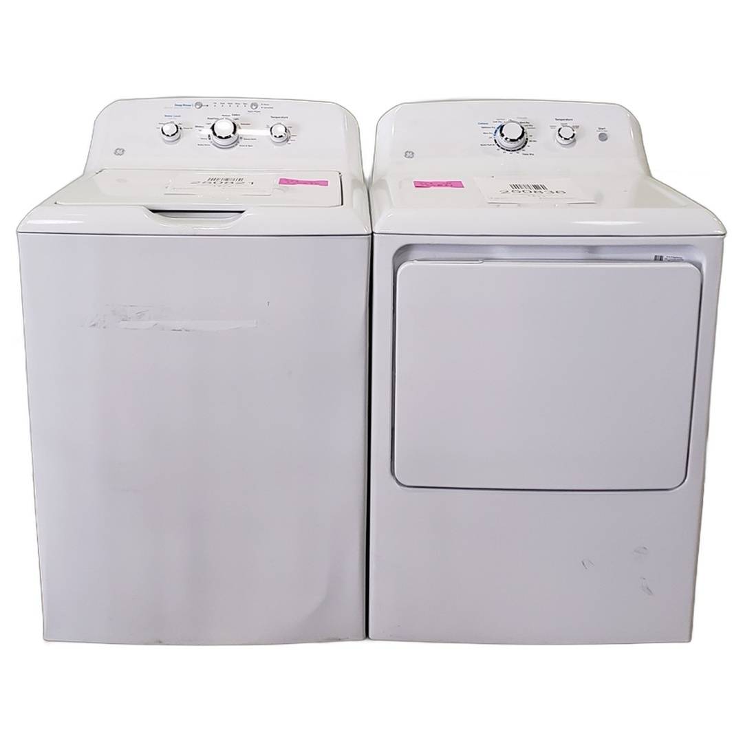 4.0 Cu. Ft. GE Top Load Washer and Dryer Set White - GTW325ASWWW