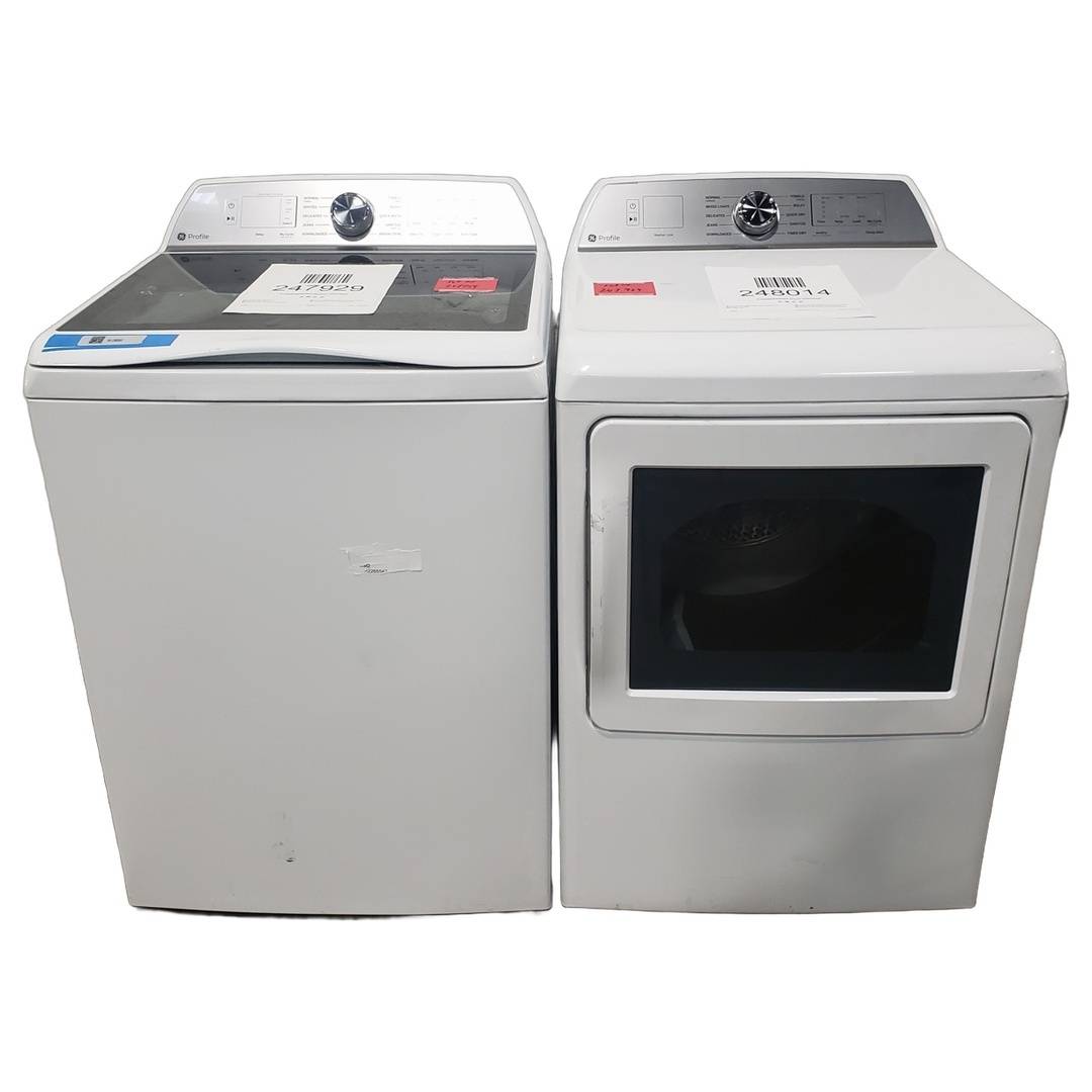 4.9 Cu. Ft. GE Top Load Washer and Dryer Set White - PTW605BSRWS