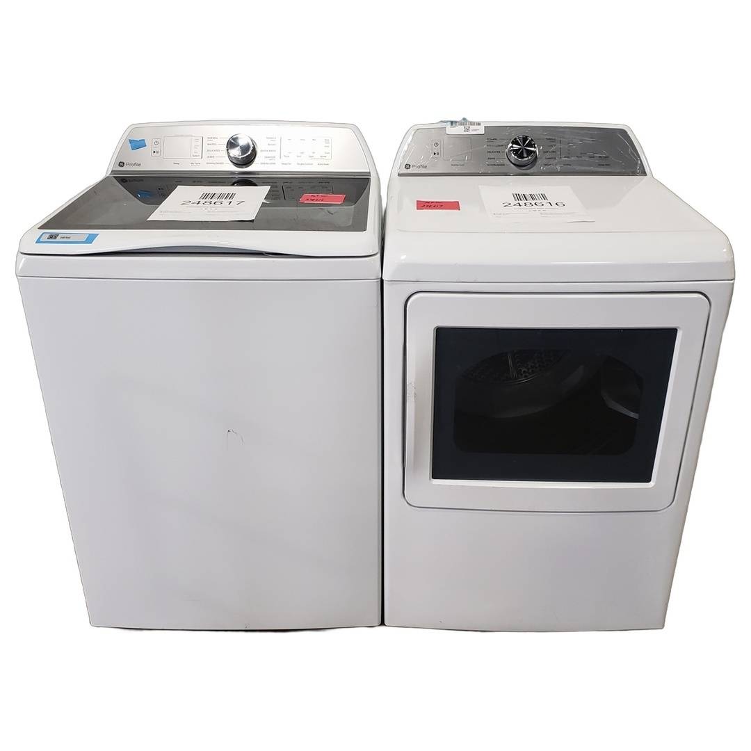 4.9 Cu. Ft. GE Top Load Washer and Dryer Set White - PTW605BSRWS