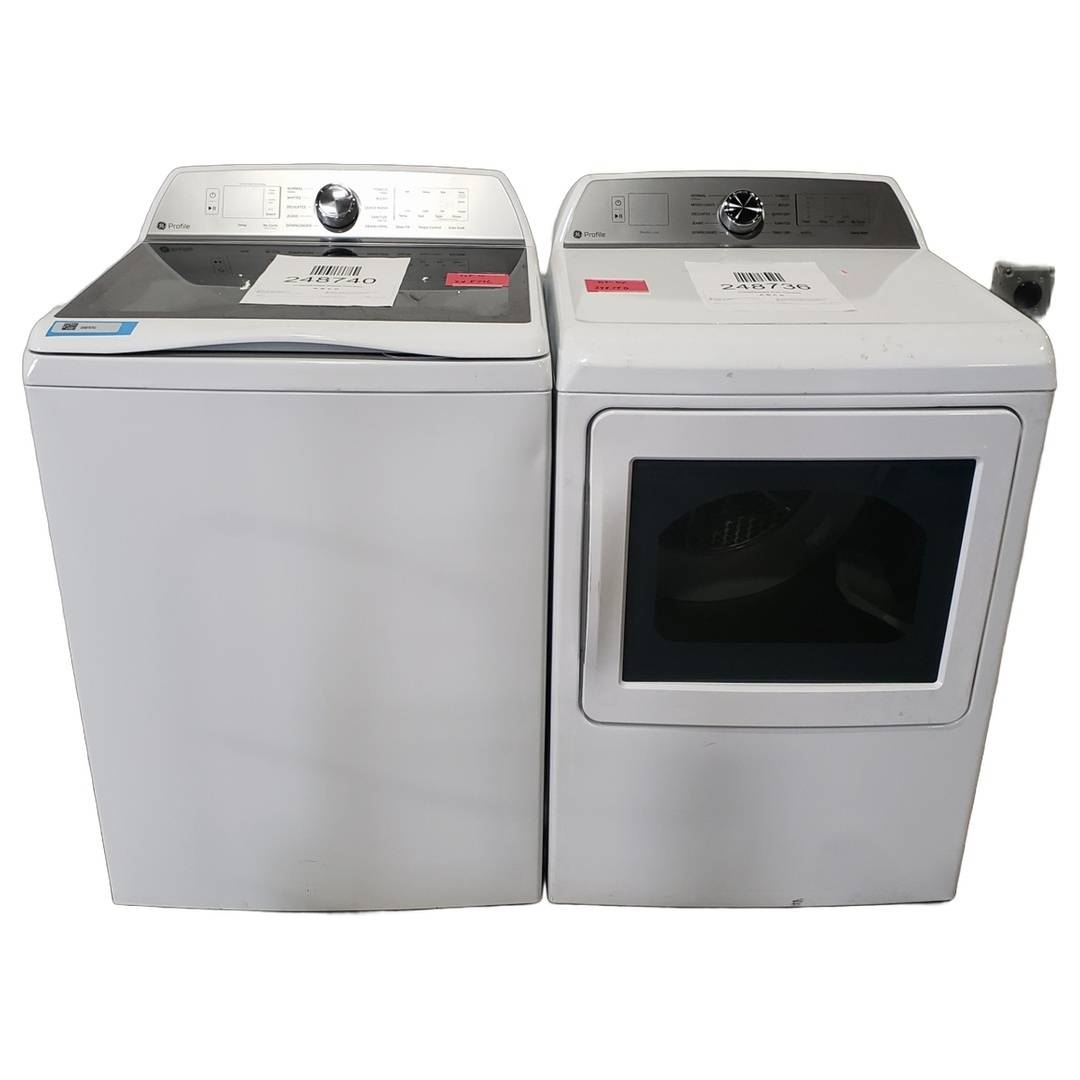 4.9 Cu. Ft. GE Top Load Washer and Dryer Set White - PTW605BSRWS
