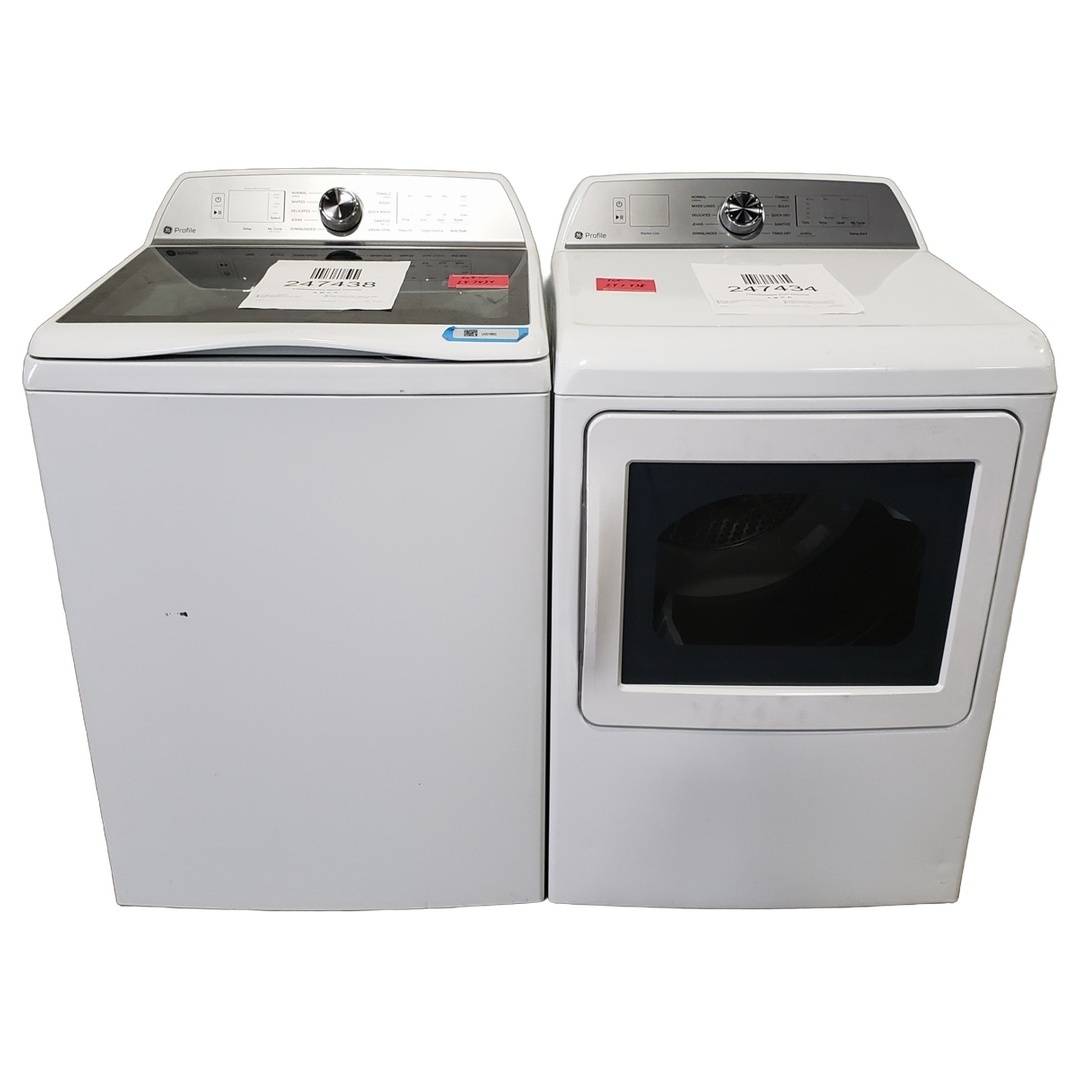 5.0 Cu. Ft. GE Top Load Washer and Dryer Set White - PTW600BSRWS