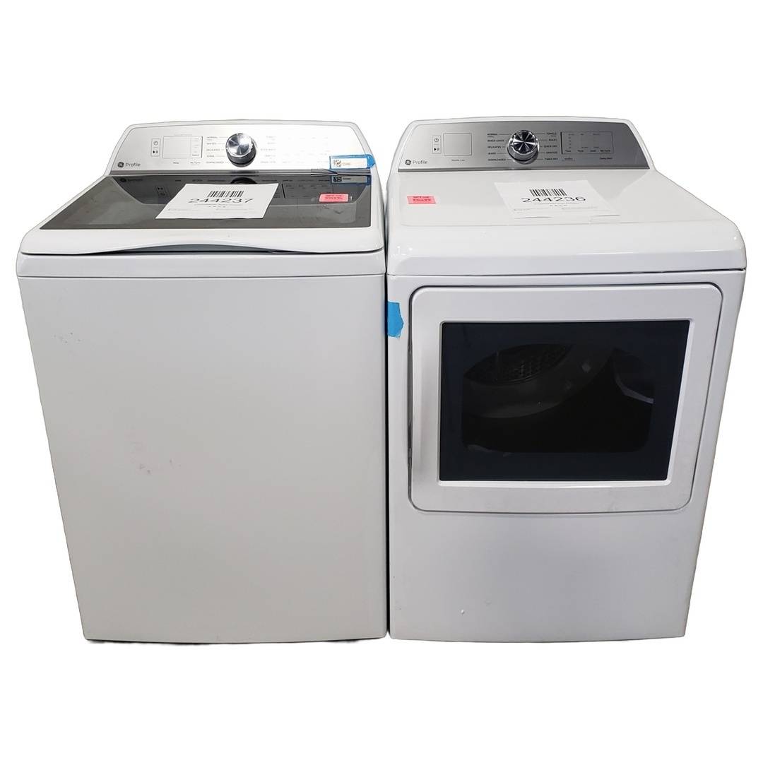 5.0 Cu. Ft. GE Top Load Washer and Dryer Set White - PTW600BSRWS
