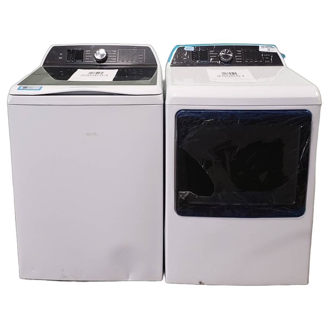 5.4 Cu. Ft. GE Top Load Washer and Dryer Set White - PTW700BSTWS